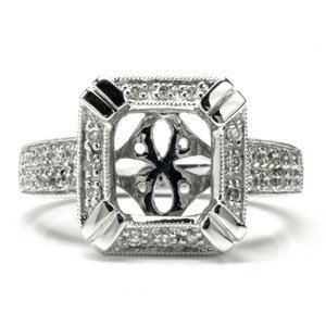 This is a dramatic engagement setting featuring numerous round brilliant-cut diamonds glittering within beaded edge channels. SKU# 111-1100Cheap "14k White Gold, Round Diamond Engagement Setting (0.28 ctw)" Discount Review Shop