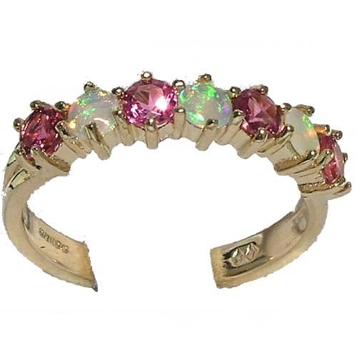 Cheap "14K Yellow Gold Ladies Colorful Fiery Opal & Pink Tourmaline Anniversary Eternity Ring - Finger Sizes 5 to 12 Available" Discount Review Shop