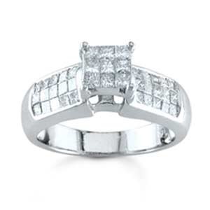 Illusion at its best! Want all the bling without the huge price tag attached? Consider this amazing invisibly-set princess-cut diamond engagement ring. A series of smaller princess-cuts unite, creating the illusion of a larger center stone, standing high atop a sparkling invisibly-set diamond ring. Also available in 18k gold and platinum, please contact a jewelry consultant at 1-888-SEA-8818 for price.. 130-1697Cheap "14k White Gold, Invisibly-Set Princess Diamond Engagement Ring (1.15 ctw)" Discount Review Shop