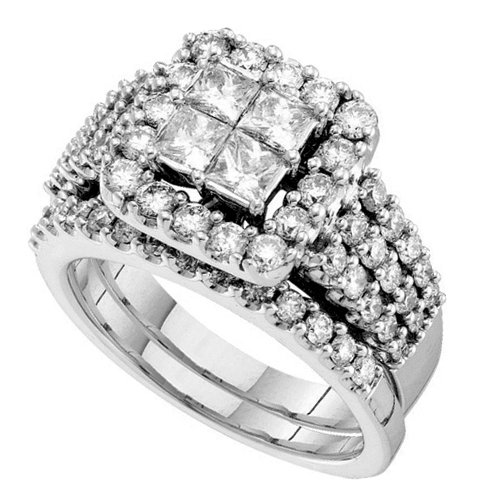 14K White Gold Illusion Setting Invisible Set Princess Cut Center with Side Stones Prong Set Round White Diamonds Duo 2 Two Piece Womens Ladies Bridal Set Wedding Engagement Solitaire Ring Band ( 3.00 cttw H - I Color SI3 - I1 Clarity )Cheap "14K White Gold Illusion Setting Invisible Set Princess Cut Center with Side Stones Prong Set Round White Diamonds Duo 2 Two Piece Womens Ladies Bridal Set Wedding Engagement Solitaire Ring Band ( 3.00 cttw H - I Color SI3 - I1 Clarity ) (Size 4 ~ 9)" Discount Review Shop