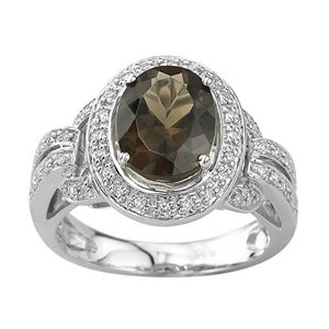 Cheap "2 1/2 Carat Smoky Quartz & Diamond 14k White Gold Ring" Discount Review Shop
