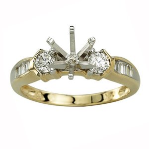 "1/2 Carat Round & Baguette Diamond 14k Yellow Gold Engagement Setting" Overview